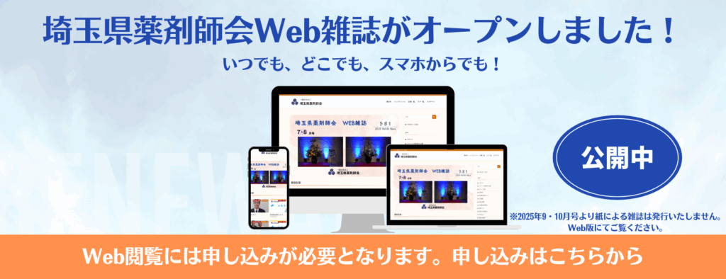 埼玉県薬剤師会Web雑誌は2025年7・8月号をもって冊子による発行配布は終了いたします。